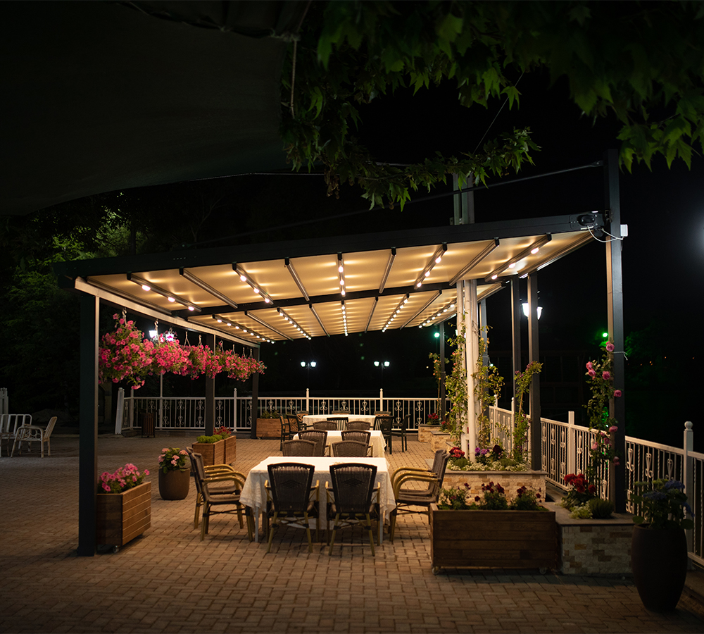- Yurtdışından ithal edilen bakımı kolay ve uzun ömürlü kumaşlar kullanılan pergola sistemi sizlere dört mevsim yaşam alanı oluşturmaktadır.